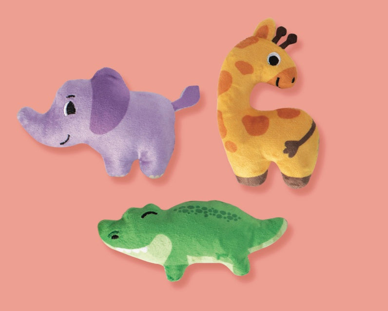 Wild Time 3 Piece Plush Dog Toy Set for Small Dogs with Loud Squeaker and Crinkle Paper in each Toy