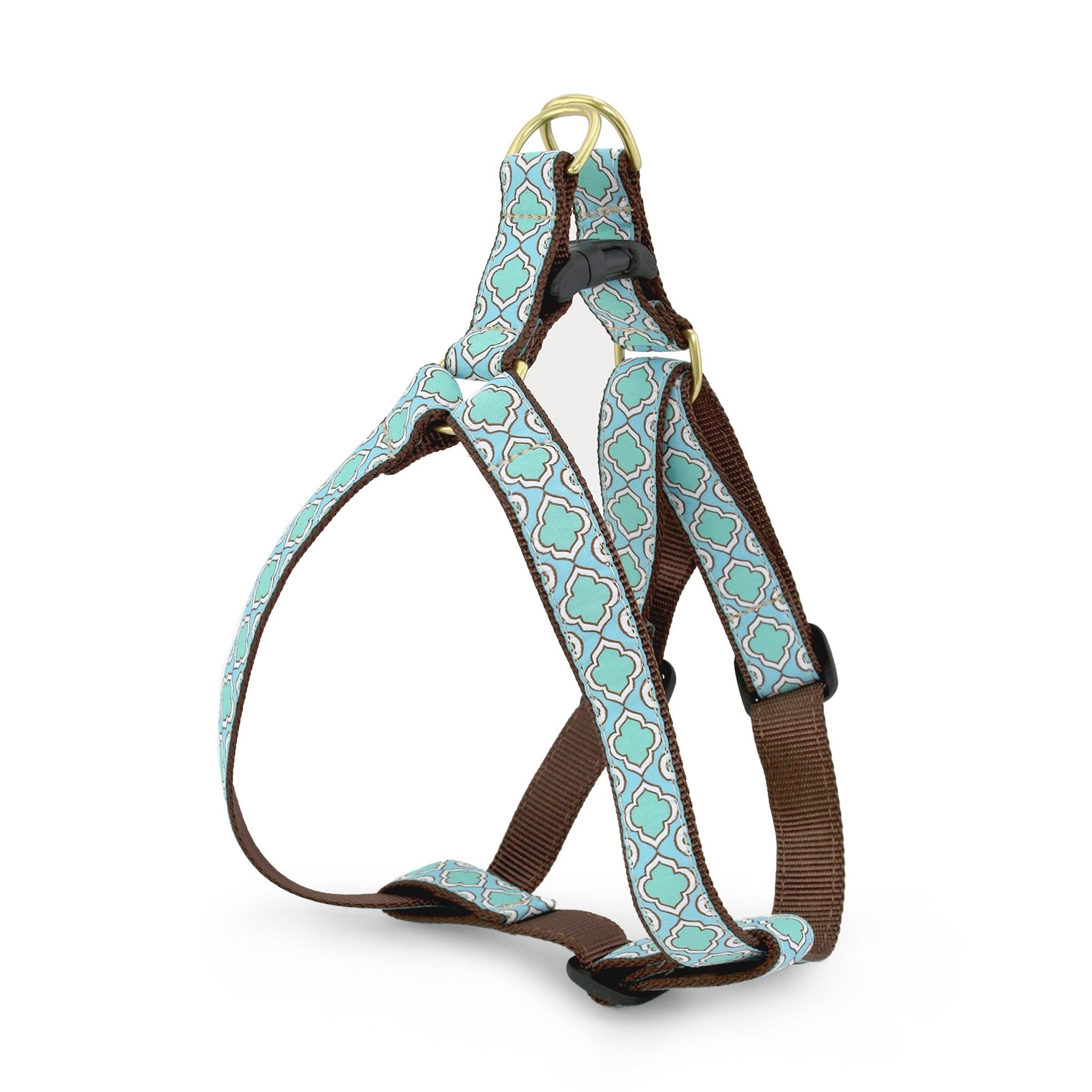 Made in the USA! Our popular step-in style harnesses are adjustable three ways to perfectly suit your dog's shape and size. They are a breeze to get on and off too! Your dog simply steps in and then the quick-release buckle snaps together effortlessly over their shoulders. Our harnesses are made from high-tensile strength nylon webbing with sewn on polyester and nylon ribbons, and are stain and fray resistant. They are designed to last a lifetime! Complete the look with the matching collar and lead.
